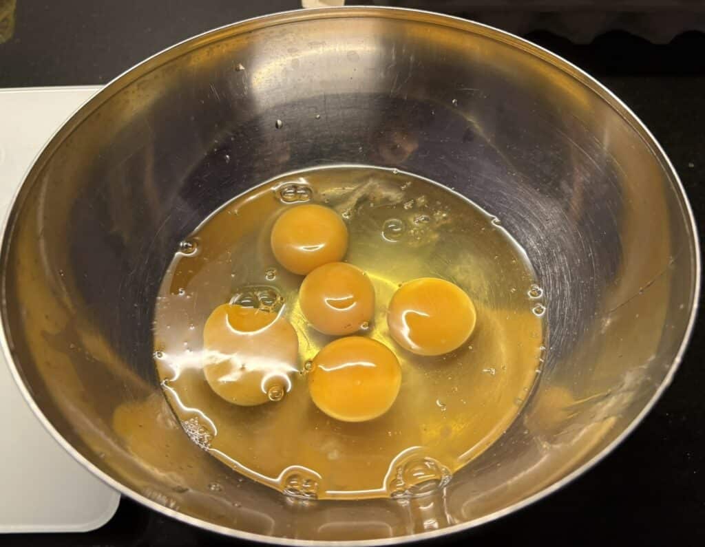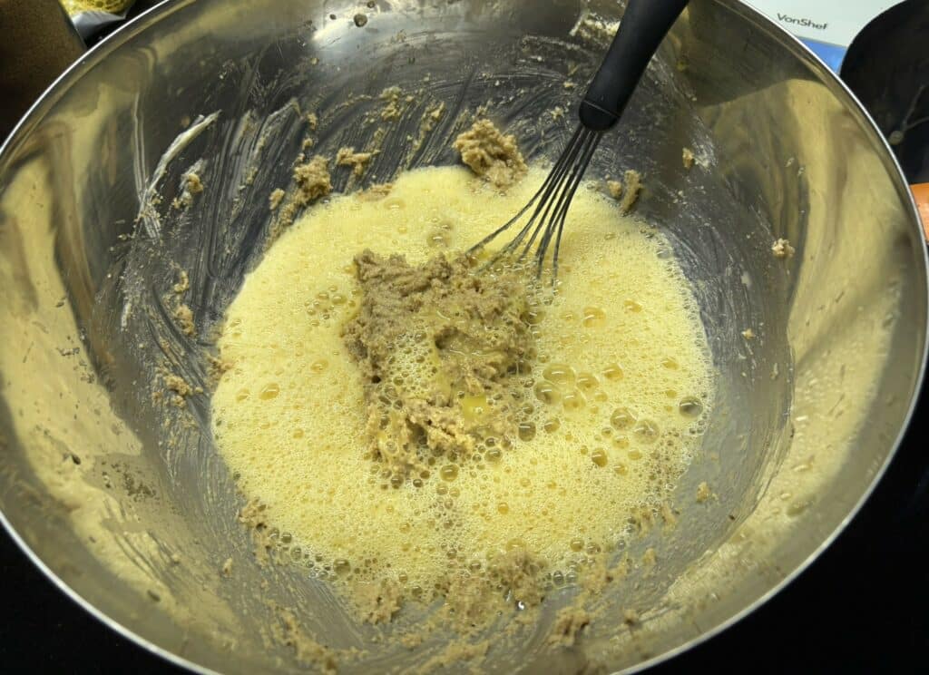 Mélangez bien puis incorporez les 5 œufs préalablement fouettés.